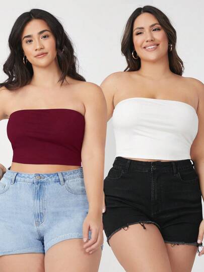 SHEIN BASICS 大码女式休闲百搭纯色抹胸 - 彩色 - 查看 2
