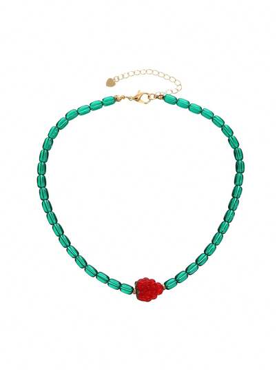 1 件手工水果串珠项链,受社交媒体影响者启发的时尚配饰,玻璃制成,适合春夏季 - 紅樹莓NK - 查看 1