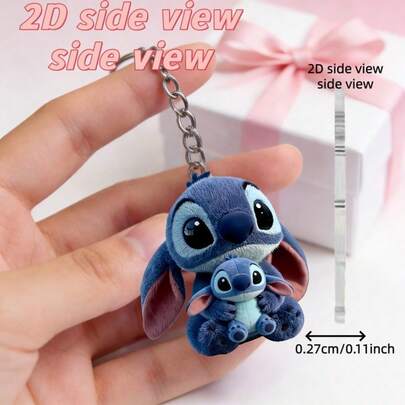 【2D平面】迪士尼星际宝贝亚克力钥匙扣 - 2D平面设计,不锈钢链,适用于钥匙、背包和钱包,是送给男士和女士的完美情人节礼物、复活节礼物、生日礼物、可爱钥匙扣、小饰品、女士钥匙扣、母亲节创意礼物、腕带钥匙扣、可爱钥匙扣、教师节礼物、钥匙圈