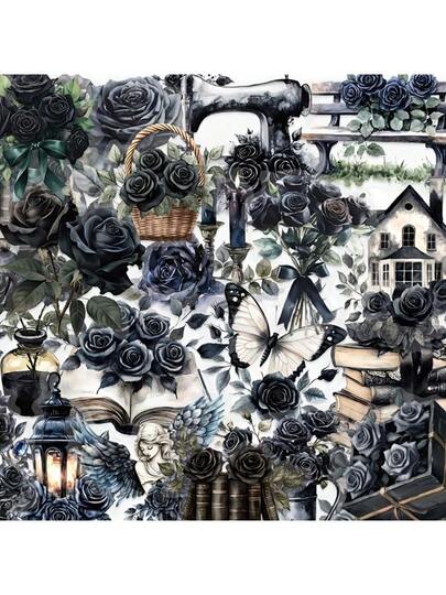 [Dark Romance] Gothic Rose Floral Stickers | 50-Pack | PVC Material | Dark Romance Themed | Scrapbooking, Journals, Phone Cases, Laptops, Travel Luggage, And Skateboard DIY Crafts - 50pcs - 查看 1