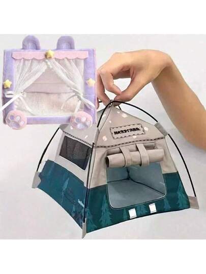 (仅适用于娃娃床)创意可爱动物娃娃帐篷床,适用于娃娃毛绒玩具,10厘米/17厘米LBB玩偶摄影露营迷你帐篷娃娃屋桌面装饰 - 彩色 - 查看 1