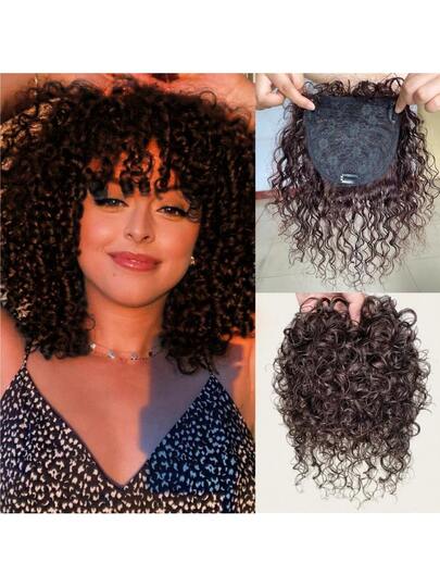 女士真人发片夹式假发,短卷发,适合头发稀疏者,隐形无痕,尺寸13x14厘米 - 彩色 - 查看 1