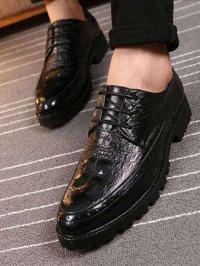 (尺码偏小) 驾驶/通勤商务正装西装皮鞋,美式风格新款系带休闲牛津鞋,韩版男士 - 黑色 - 查看 1