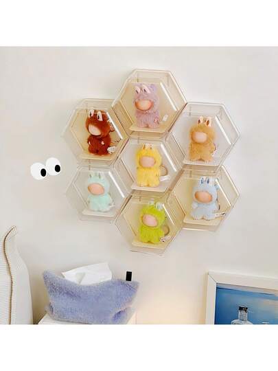 【壁挂式防尘展示柜】1个,适用于LABUBU4.0迷你收纳柜,六角形壁挂式展示柜,2025年新款展示柜,亚克力收纳盒,透明收纳盒,壁挂式设计,非常适合收藏和展示|怪兽之恋|4.0系列毛绒玩具,是万圣节、圣诞节、精美礼品(不含娃娃)的精美理想礼物。 - 彩色 - 查看 1