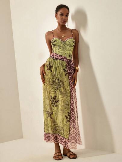 Écloséra 女士两件式印花性感吊带连体泳衣,侧边系带裙摆,夏季 - 彩色 - 查看 1