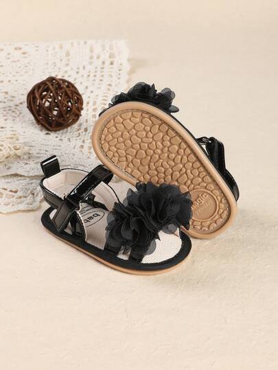 0-1岁女婴软底防滑透气凉鞋,适合3-6个月、9-12个月幼儿,夏季款 - 黑色 - 查看 3