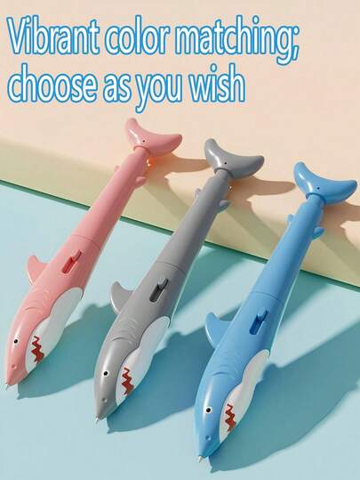 0.5毫米笔尖鲨鱼形喷水圆珠笔,独特按压式喷水笔,学校及办公用品 - 彩色 - 查看 1