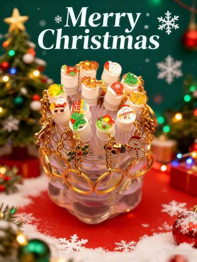 1/2/3/5件圣诞透明金属卡通图案钥匙扣圣诞图案节日睫毛刷眉刷便携管状睫毛刷带透明盒 - 彩色 - 查看 10