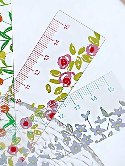 1/2/4 件套,透明植物尺,返校必备花卉尺,5.91 英寸亚克力尺,学校及办公用品 - 彩色 - 查看 9
