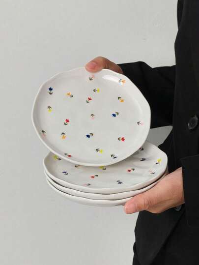 1/2/4件套花卉陶瓷盘,欧式精致花卉陶瓷碟,甜点/蛋糕盘,托盘,小吃盘,早餐盘,水果盘,糖果盘,下午茶坚果盘,礼品套装 - 彩色 - 查看 10