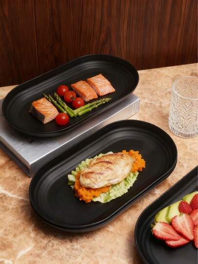 1/2/4个塑料盘,易于清洗,适用于水果沙拉、牛排等。 - 黑色 - 查看 8