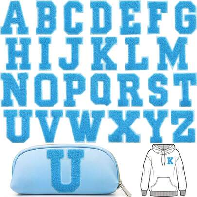 1/26片装雪尼尔2.8英寸字母熨烫贴片,适用于修补牛仔裤、T恤衫和其他衣物,字母贴片徽章 - 藍色 - 查看 36