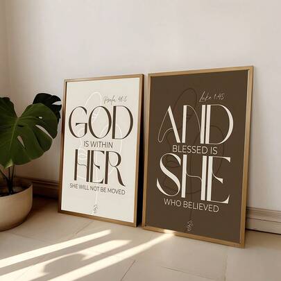 1/2幅波西米亚风基督教墙画,诗篇46:5 & 路加福音1:45圣经经文帆布画,中性宗教语录海报,客厅卧室墙面装饰,无框