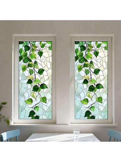 1/2片装可重复使用的绿色植物图案乙烯基隐私窗膜,静电吸附玻璃装饰贴纸,适用于餐厅、客厅、办公室、卧室装饰和艺术景观