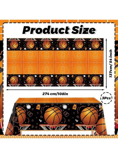 1/3/5 件装篮球主题一次性塑料桌布套装,长方形塑料桌布,运动派对装饰,尺寸:137x274厘米 - 咖啡棕 - 查看 1