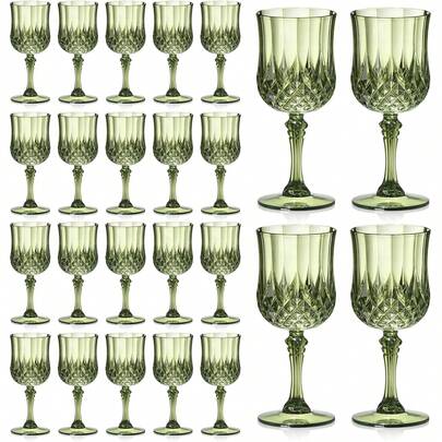 1/3/6/12件装复古压花可重复使用葡萄酒杯,厚实耐用的香槟鸡尾酒杯,果汁杯,适合派对、婚礼,复古风格饮具,是情人节、婚宴、盛大活动的理想之选(全新绿色) - 綠色 - 查看 1