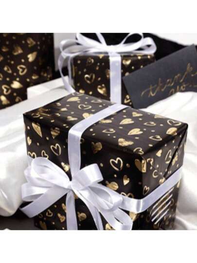 1/3张,大号(16.93*118.11英寸)黑色金色高级礼品包装纸,高端商务礼品包装纸,适用于生日、情人节、节日庆典。 - 彩色 - 查看 6