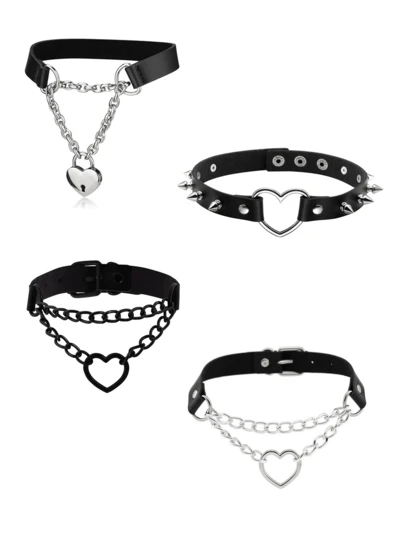 1/4件套 Sacina 哥特风心形链条项链,PU 皮革材质,哥特朋克摇滚风 Emo 项链,万圣节圣诞节饰品礼物,男女皆宜