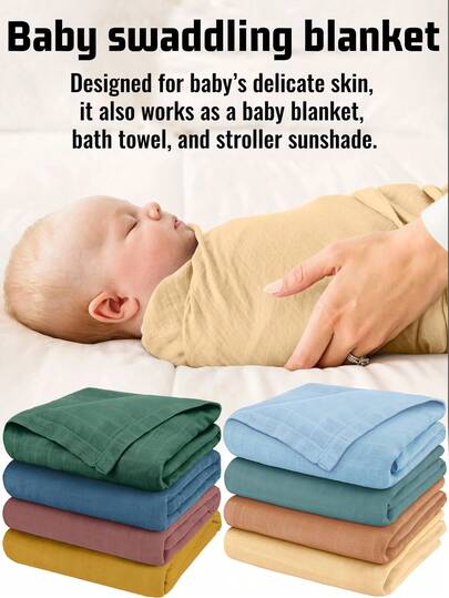 1/4片装双层纱布纯色新生儿襁褓毯 - 柔软低敏,可机洗,婴儿包裹毯,住院包必备品及浴巾 - 彩色 - 查看 1