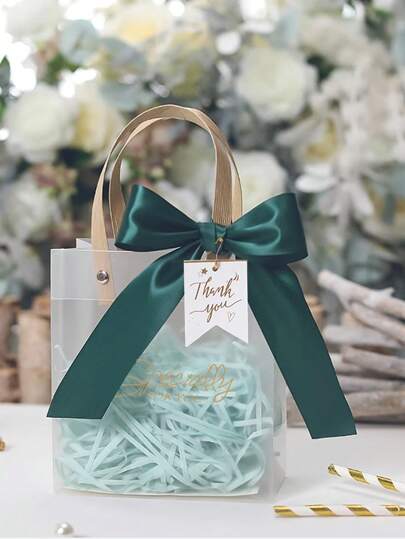1/5/10 件优质礼品袋,厚磨砂手提包,配丝带和感谢卡,薰衣草图案,圣诞节 - 綠色 - 查看 1