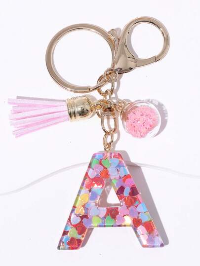 1个A-Z树脂粉色心形字母钥匙扣吊坠,适合女性和女孩,可作为装饰字母钥匙扣挂在钱包和手提包上
