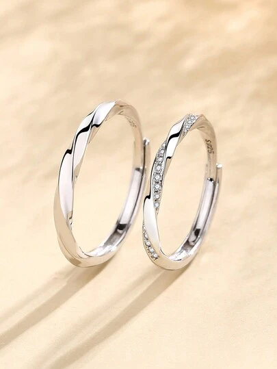 1對s925純銀情侶戒指代表一起在愛中度過美好時光。情侶對戒情人節禮物 - 銀色 - 查看 4