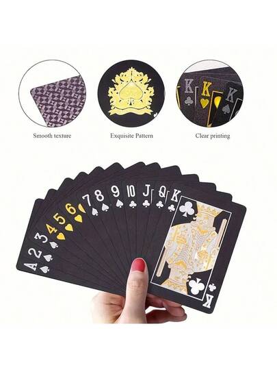 1副防水塑料撲克牌,適用於聖誕節、新年、感恩節禮物;適用於與朋友和家人聚會玩撲克牌遊戲 - 黑色 - 查看 1