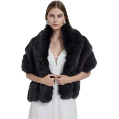 1 Elegant Polyester Women Long Shawl Cloak Cape Winter Warm Faux Fox Fur For Party