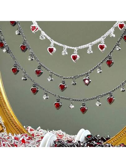 1米时尚铜链红色爱心水钻链深色款适合珠宝制作DIY材料服装配饰配件 - 鏈條 - 查看 1