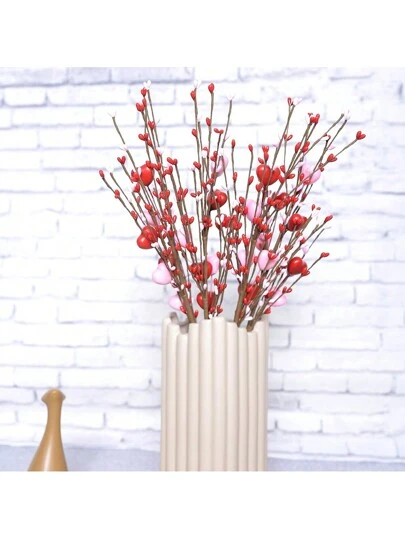 1朵新娘心形人工花,長莖心形紅莓,情人節氛圍裝飾,適用於婚禮佈置,新娘派對,插花派對,家居桌面裝飾 - 粉色 - 查看 6