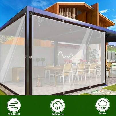 1个带金属孔眼的PE透明罩,可折叠,透明篷布侧板,防风雨篷布,适用于花园、露台、凉亭、入口、阳台,防雨防雪