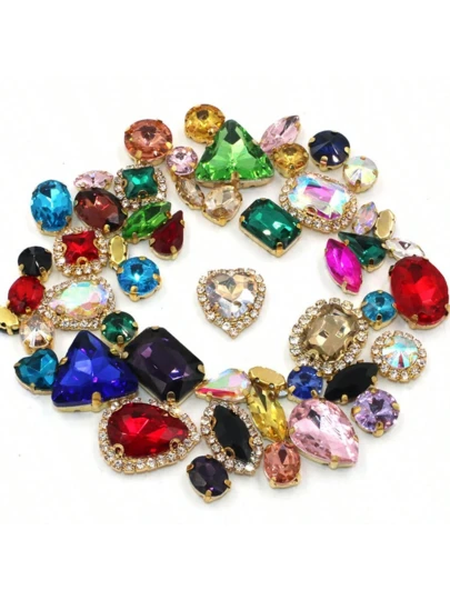 1包约50颗金色缝制水钻,混合形状玻璃宝石金属爪缝纫铆钉水钻水晶,银色 - 多色混彩 - 查看 10