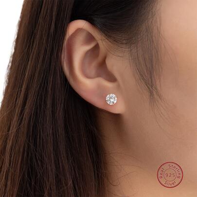 1对925纯银优雅简约圆形6.0毫米/0.236英寸立方氧化锆耳钉,女士款 - 金色 - 查看 1
