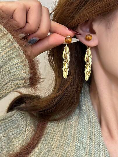 1 对波西米亚风流苏金叶吊坠耳环,新娘珠宝,适合婚礼、订婚、新娘、母亲礼物、女士礼物 - 彩色 - 查看 1