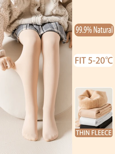 1双装春秋儿童打底裤女童秋季加厚连裤袜冬季露腿神器加绒保暖女童JK打底袜带袜袖冬季紧身裤打底袜适用5-20℃ - 杏色 - 查看 4