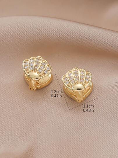一对优雅可爱复古海滩度假贝壳造型闪亮立方氧化锆耳钉,小巧精致,适合女性和女孩日常佩戴 - 彩色 - 查看 1