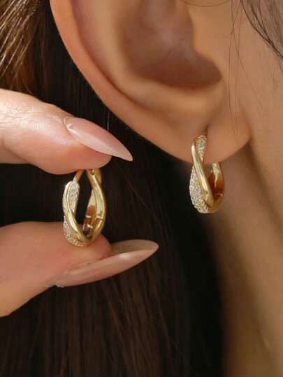 1 对优雅的镀金立方氧化锆十字耳环,适合女性在派对、婚礼、周年纪念日和日常佩戴,是绝佳的礼物之选。