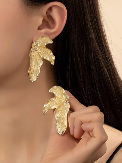 1 对优雅复古叶形女士耳环 - 金黃色 - 查看 1