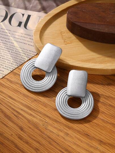 一对时尚镂空圆形纹理金属耳环,木质材质,未来科技风格,适合派对、旅行和日常佩戴。 - 銀色 - 查看 6