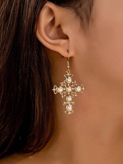 1 对时尚新款简约百搭水钻耳环,适合女性 - 金黃色 - 查看 5