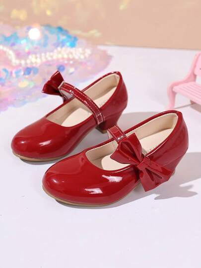 1 双女童玛丽苏公主高跟鞋,适合派对、返校季 - 紅色 - 查看 3