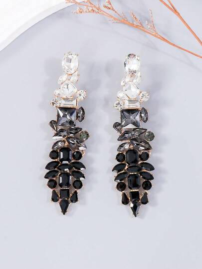 juran 1 对奢华夸张玻璃水钻渐变色吊坠耳环,适合女士,适合度假、派对、婚礼 - 黑色 - 查看 1