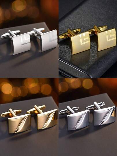 1对男士几何方形铜袖扣,适合婚礼、商务、日常佩戴、圣诞礼物 - 彩色 - 查看 10