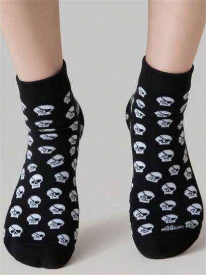 1双男士袜子,绅士朋克风黑色中筒袜,饰有白色海盗图案,适合日常穿着,春秋季款 - 黑與白 - 查看 1