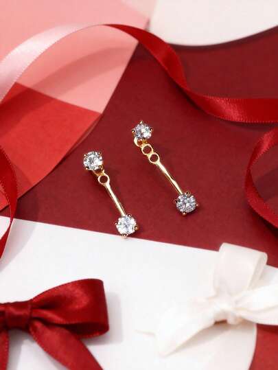 一对简约后挂式水钻耳环,独特闪亮设计,百搭佩戴 - 均碼 - 查看 1