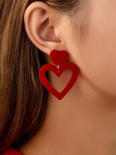 1对红色心形镂空亚克力耳环,情人节送给女孩的礼物 - 紅色 - 查看 1