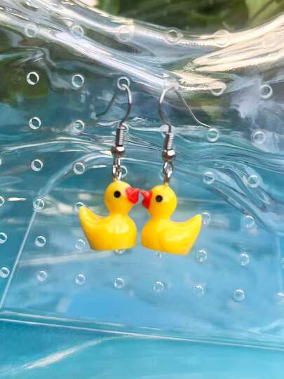 一对树脂小黄鸭耳环,独特设计,创意十足,趣味可爱,卡通动物田园风3D鸭子吊坠耳环,适合派对、日常佩戴,个性十足,通勤耳环升级版 - 黃色 - 查看 6