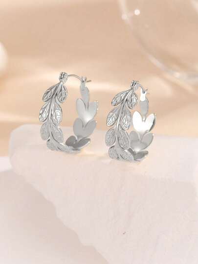1对银叶形耳环,优雅低调,是婚礼和约会的必备单品 - 金色 - 查看 1