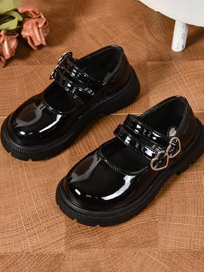 1 双春秋软底轻便舒适公主风格女童皮革正装鞋,儿童舞蹈/表演平底鞋 - 黑色 - 查看 1