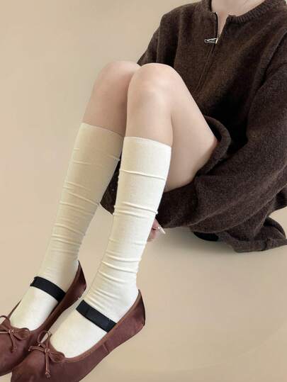 1双厚羊毛混纺中筒袜 - 彩色 - 查看 1